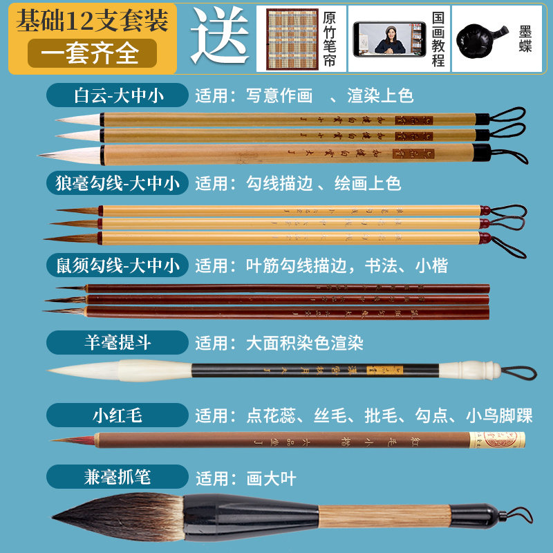 毛笔套装 初学者入门国画水墨工笔画勾线笔白描写意狼毫兼毫大白云