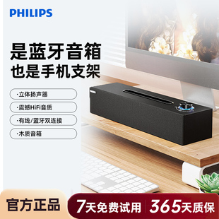 飞利浦SPA3808木质电脑音响usb有线手机蓝牙5.3重低音多媒体音箱