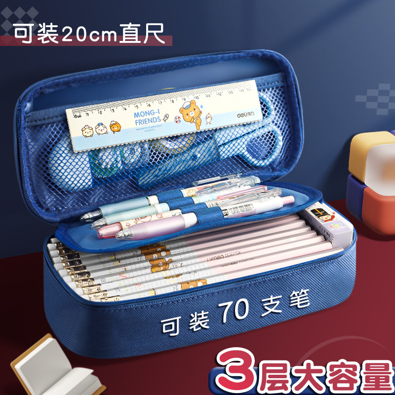 得力EVA笔袋男文具盒小学生可爱大容量儿童卡通铅笔文具袋双层幼儿园小学一二三年级多功能学生男女孩笔盒