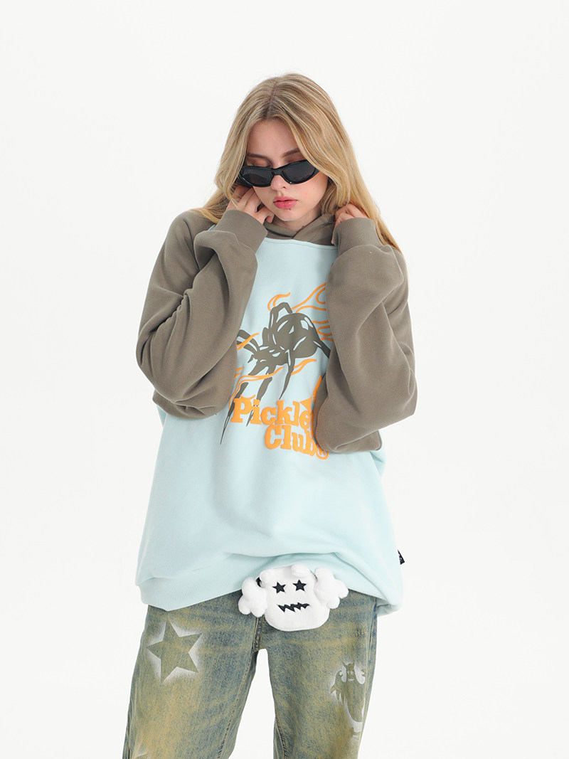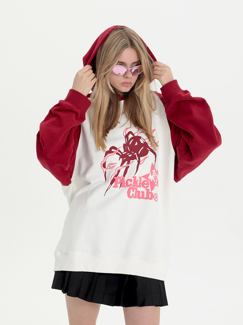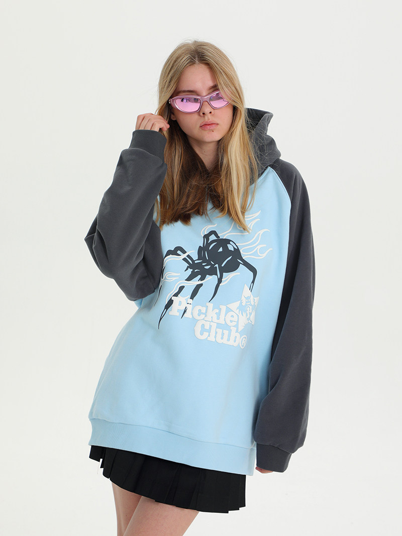 百搭上衣 幽灵蜘蛛印花插肩连帽宽松卫衣男女国潮长袖 梁拌泡菜