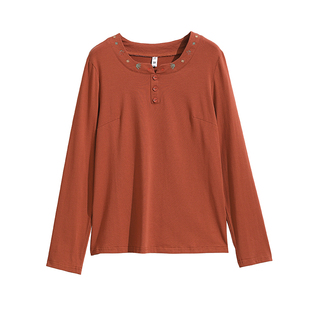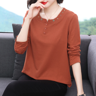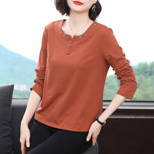 减龄打底衫 纯棉长袖 中老年妈妈装 宽松2026新款 洋气秋衣外穿 t恤女