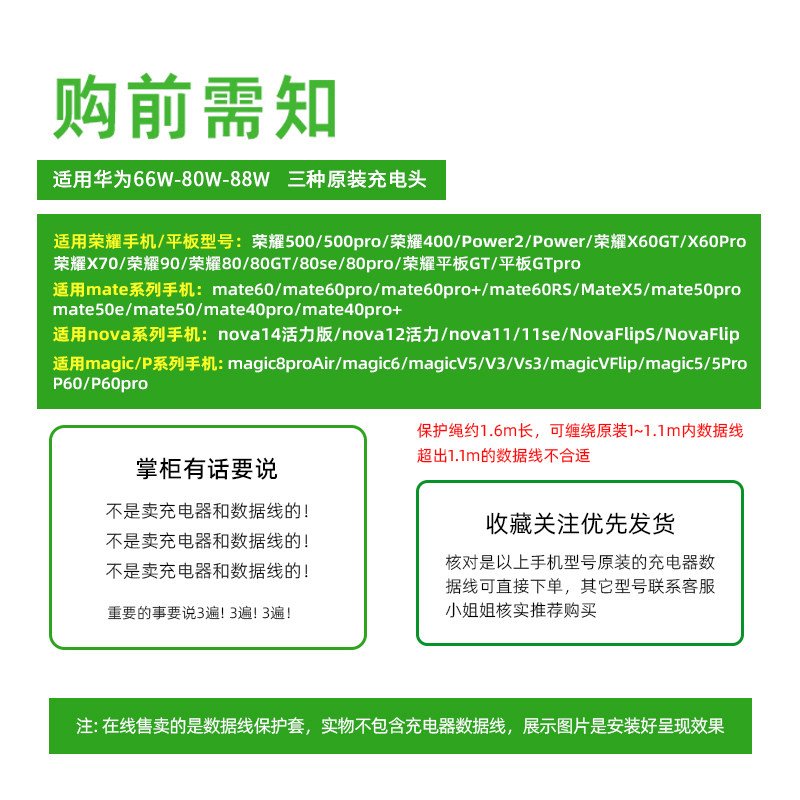 power2数据线保护套66w华为Mate60pro缠线 x60GT 适用荣耀500 400