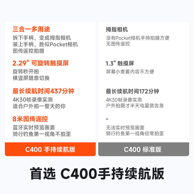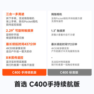 SJCAM速影C400手持Pocket拇指运动相机4K胸前记录生活vlog摄像机