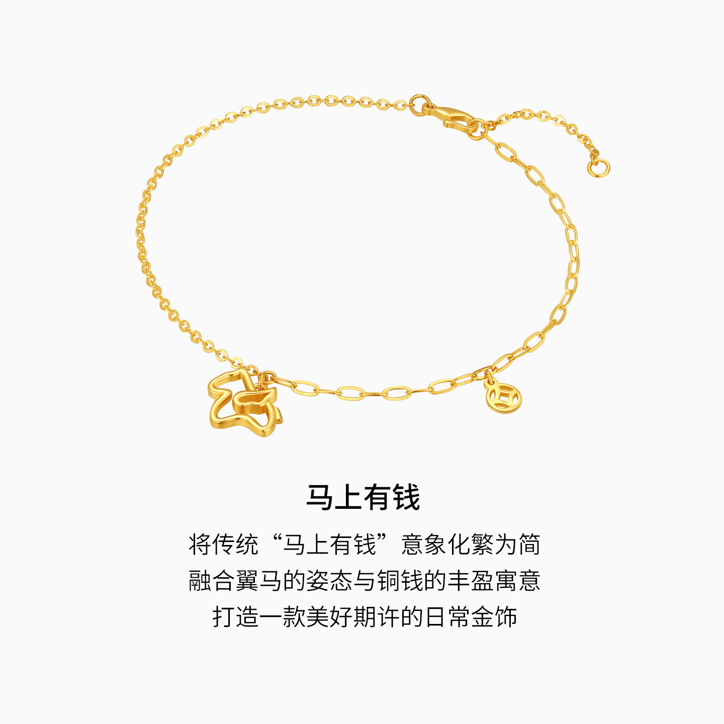 潮宏基至简马上有钱足金手链黄金手饰生肖镂空马本命年礼物 计价