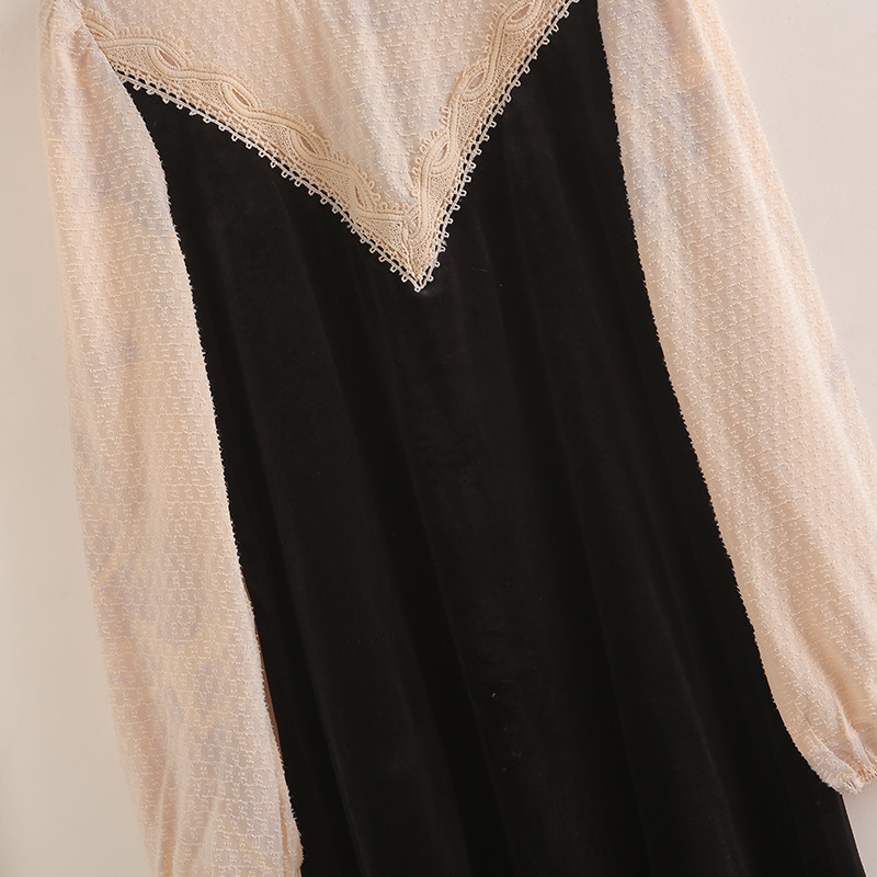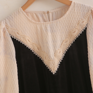 假两件拼接蕾丝秋法式 新款 复古气质名媛裙子 连衣裙女春秋季 瑕疵款
