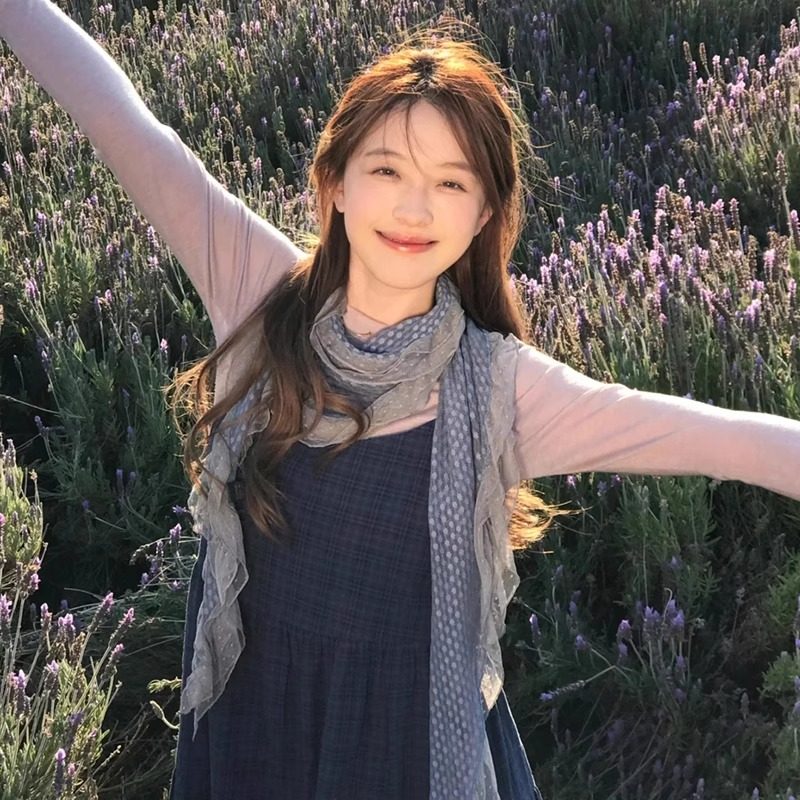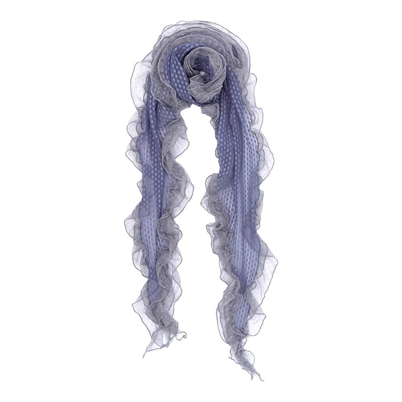 围巾 围脖拍照薄款 藤井树同款 古早灰蓝色波点蕾丝边丝巾木耳边长款