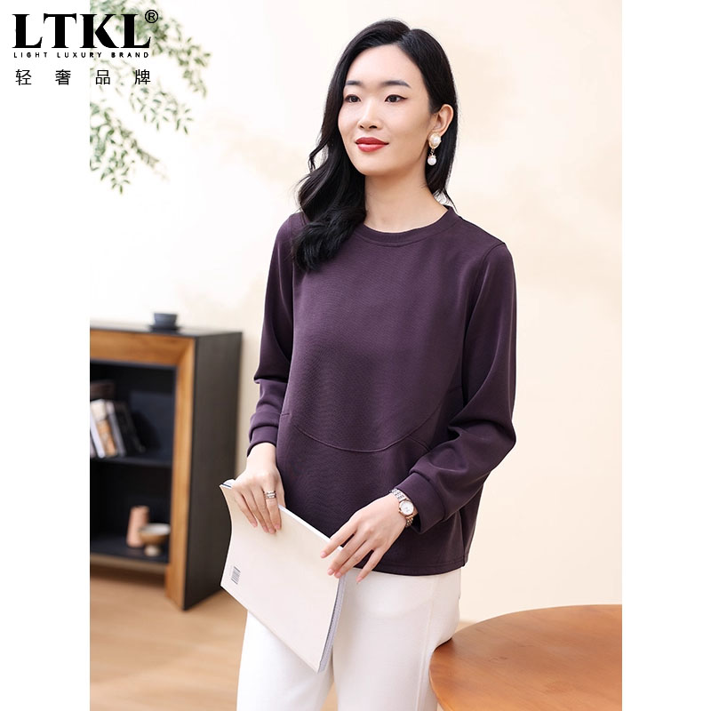 宽松圆领上衣 紫色内搭体恤简约高级大码 长袖 t恤女2025新款