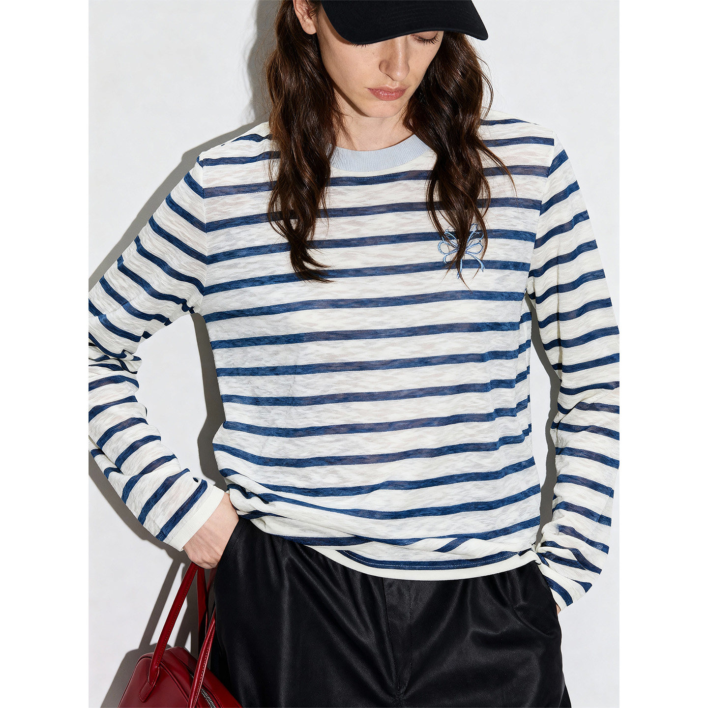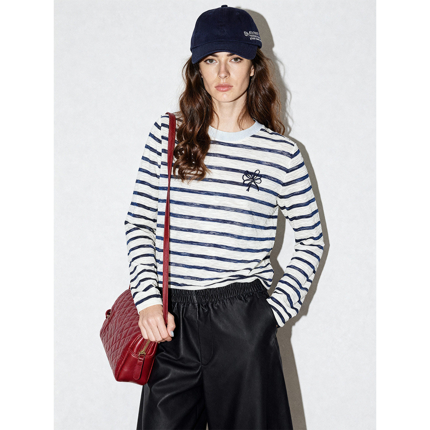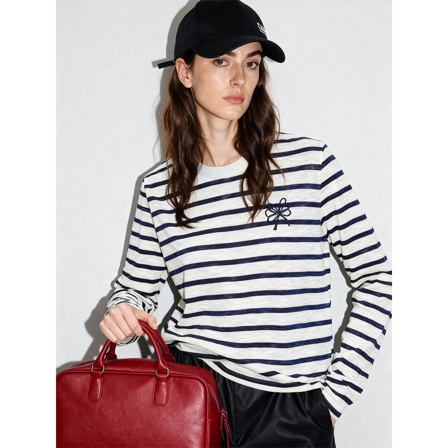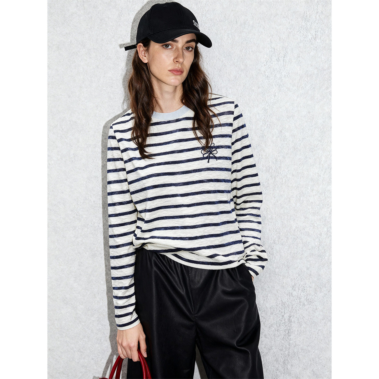 针织衫 百家好柔软舒适撞色条纹刺绣宽松廓形圆领长袖 House Basic