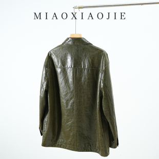 外套 2026春秋新款 欧洲站高级感油蜡羊皮西装 真皮皮衣女中长款