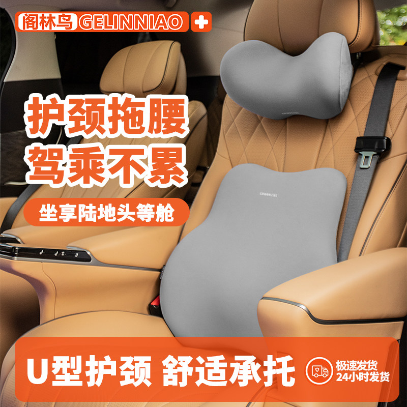 2025新款 车用座椅车载专用枕头腰靠靠垫枕头 汽车头枕颈枕靠枕套装