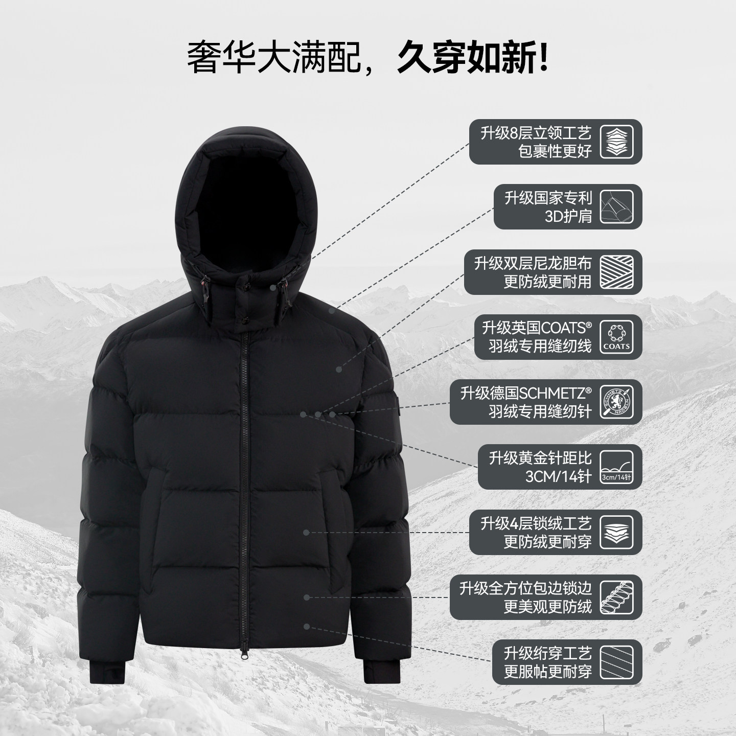 蒙口羽皇加拿大奢鹅98鹅绒云感特种尼龙轻户外短款 可脱帽外套9506