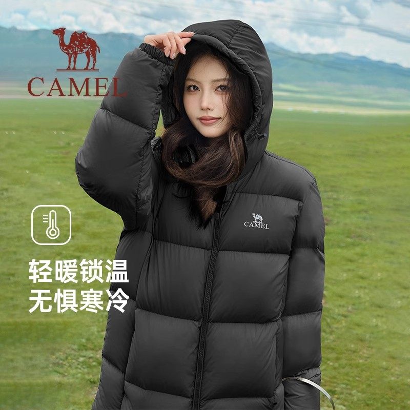 泡芙舒适外套 鸭绒保暖长款 艾莱依羽绒服女冬新款 大衣连帽简约时尚