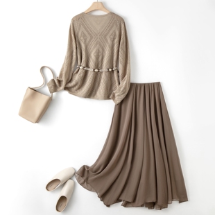 套装 IHIMI海谧波西米亚针织衫 时尚 时髦修身 半身裙两件套女春季