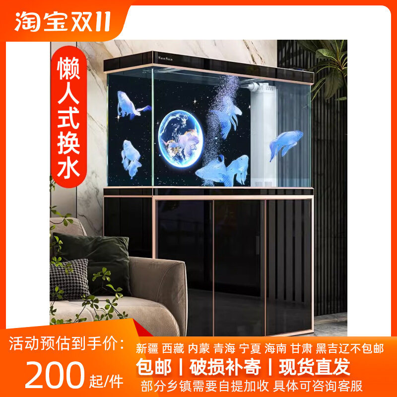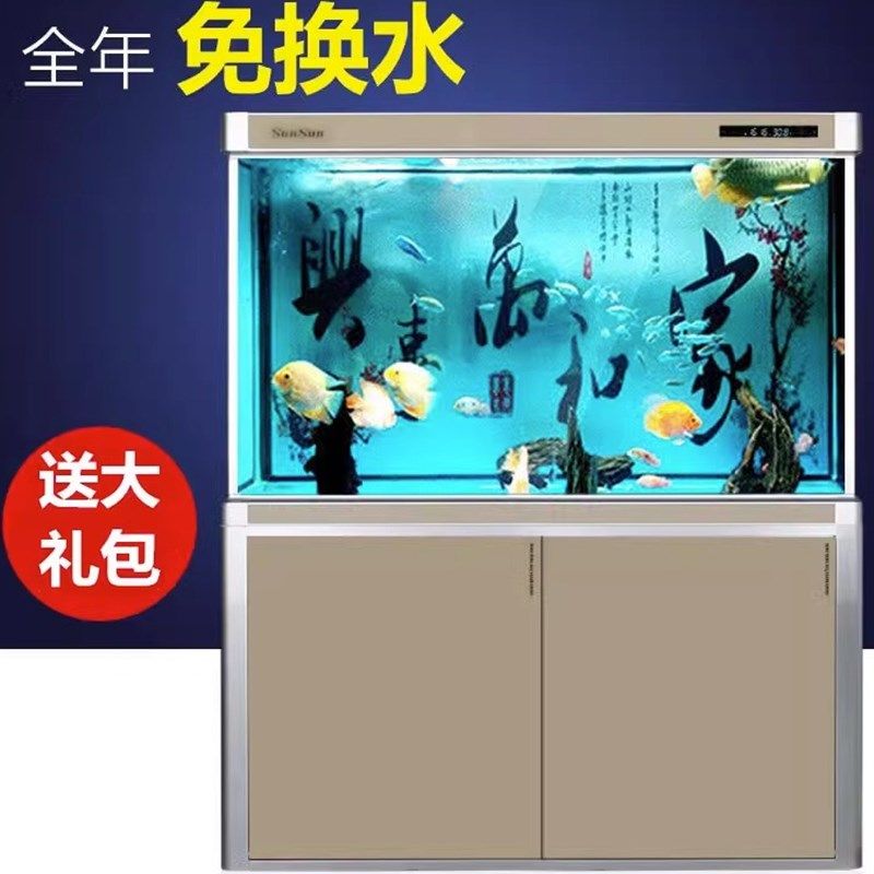 大型鱼缸客厅玻璃水族箱隔断超白家用下过滤底滤鱼缸H2Y