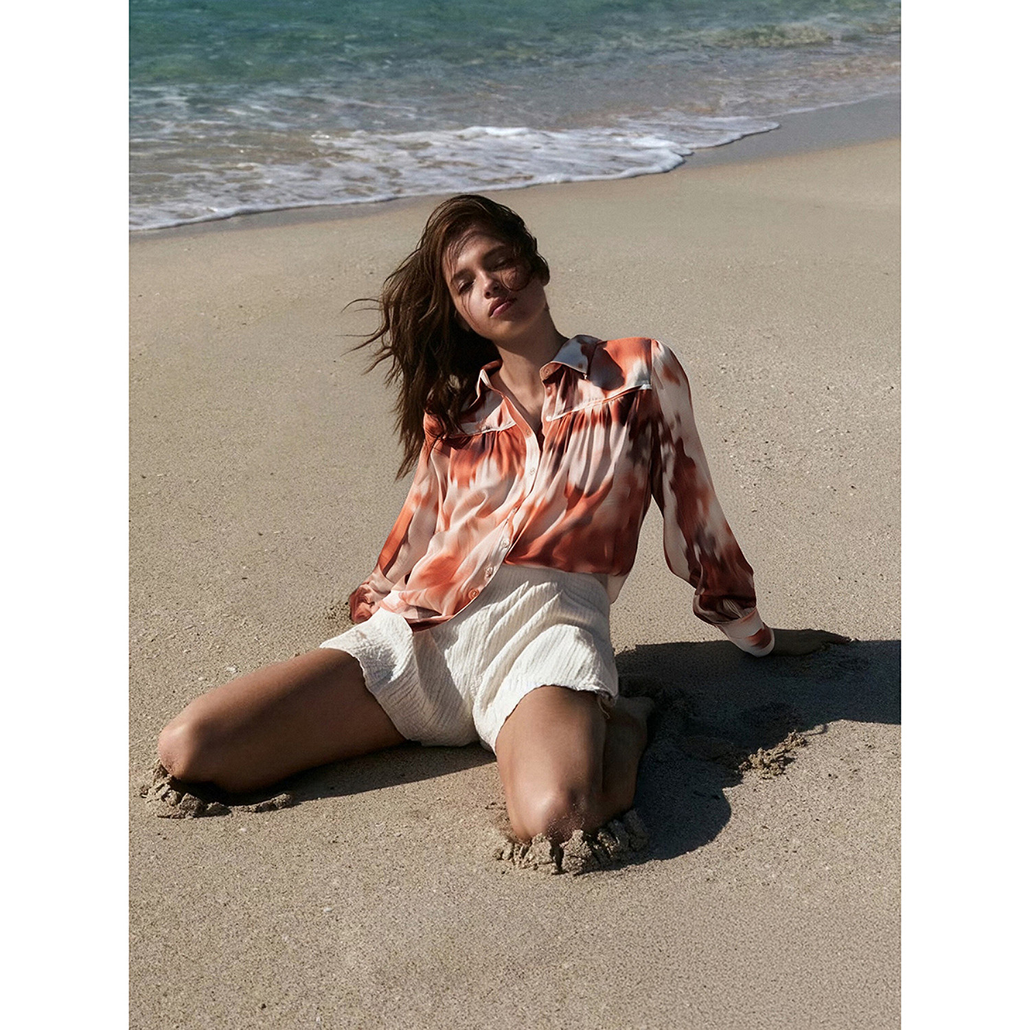 MODE 新款 美式 女夏季 宽松流行衬衣外套上衣慵懒风 复古白衬衫 ICH