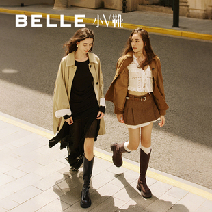 天美意复古英伦加绒弹力靴乐福袜靴女鞋 子厚底瘦瘦短靴冬新款