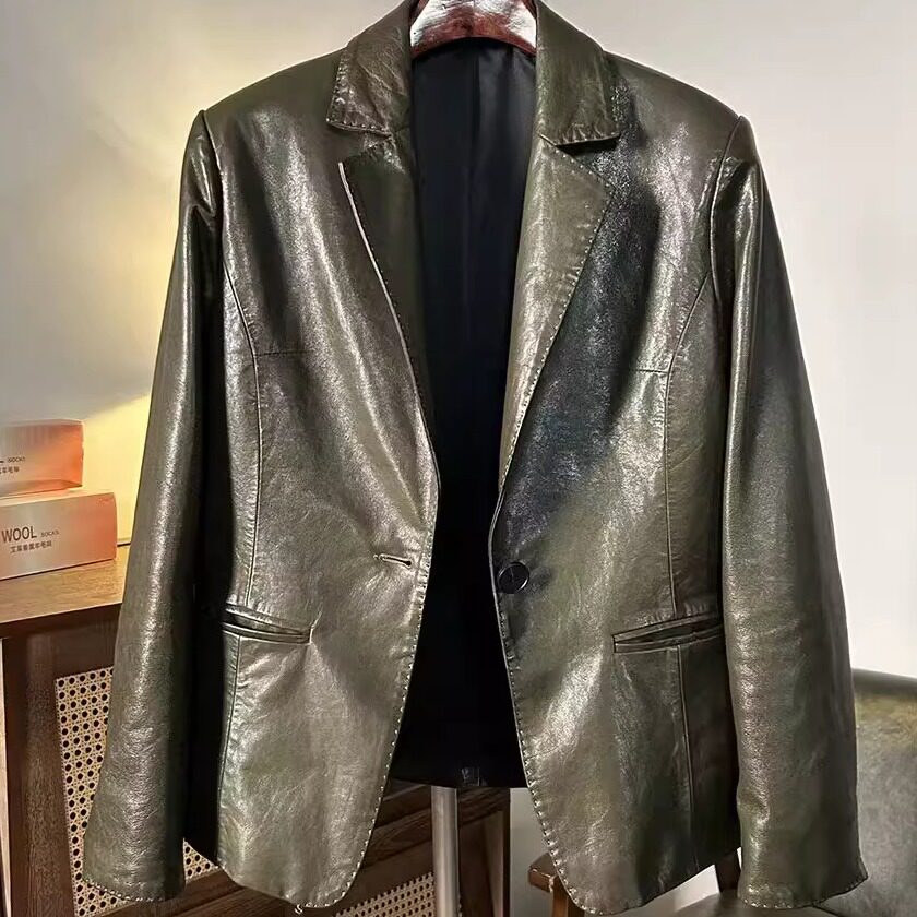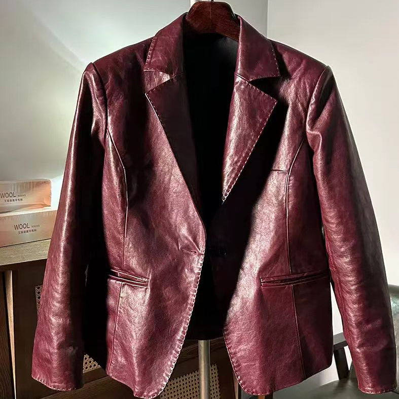 百搭休闲宽松显瘦皮夹克 外套时尚 2025新款 真皮皮衣女油蜡羊皮西装