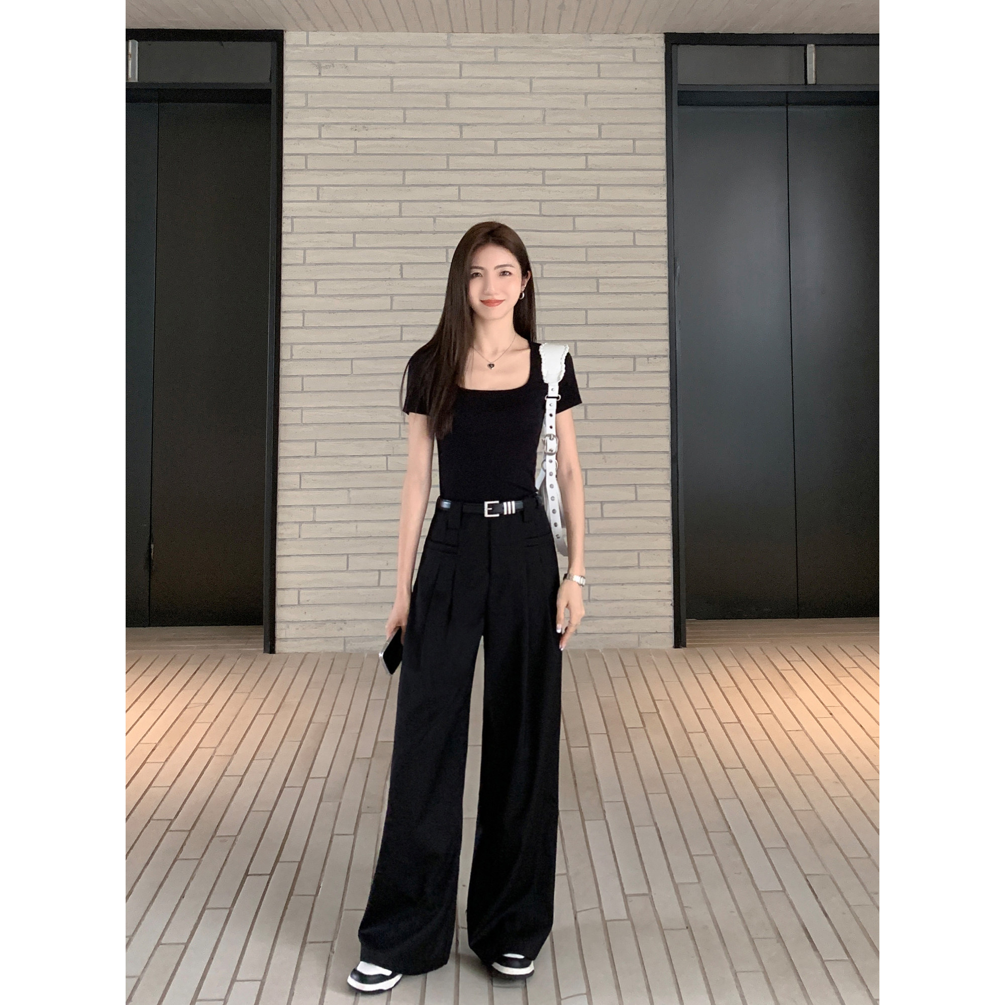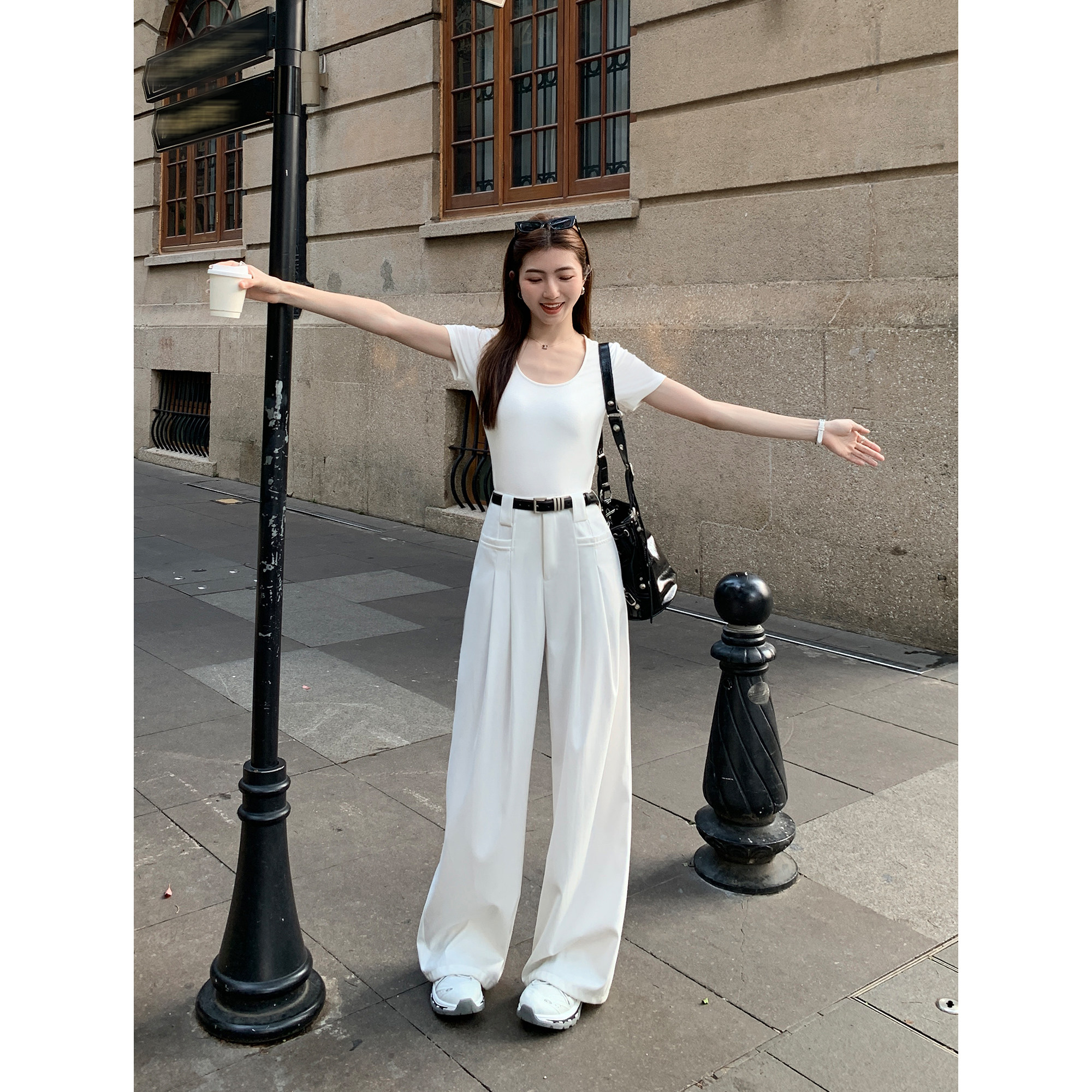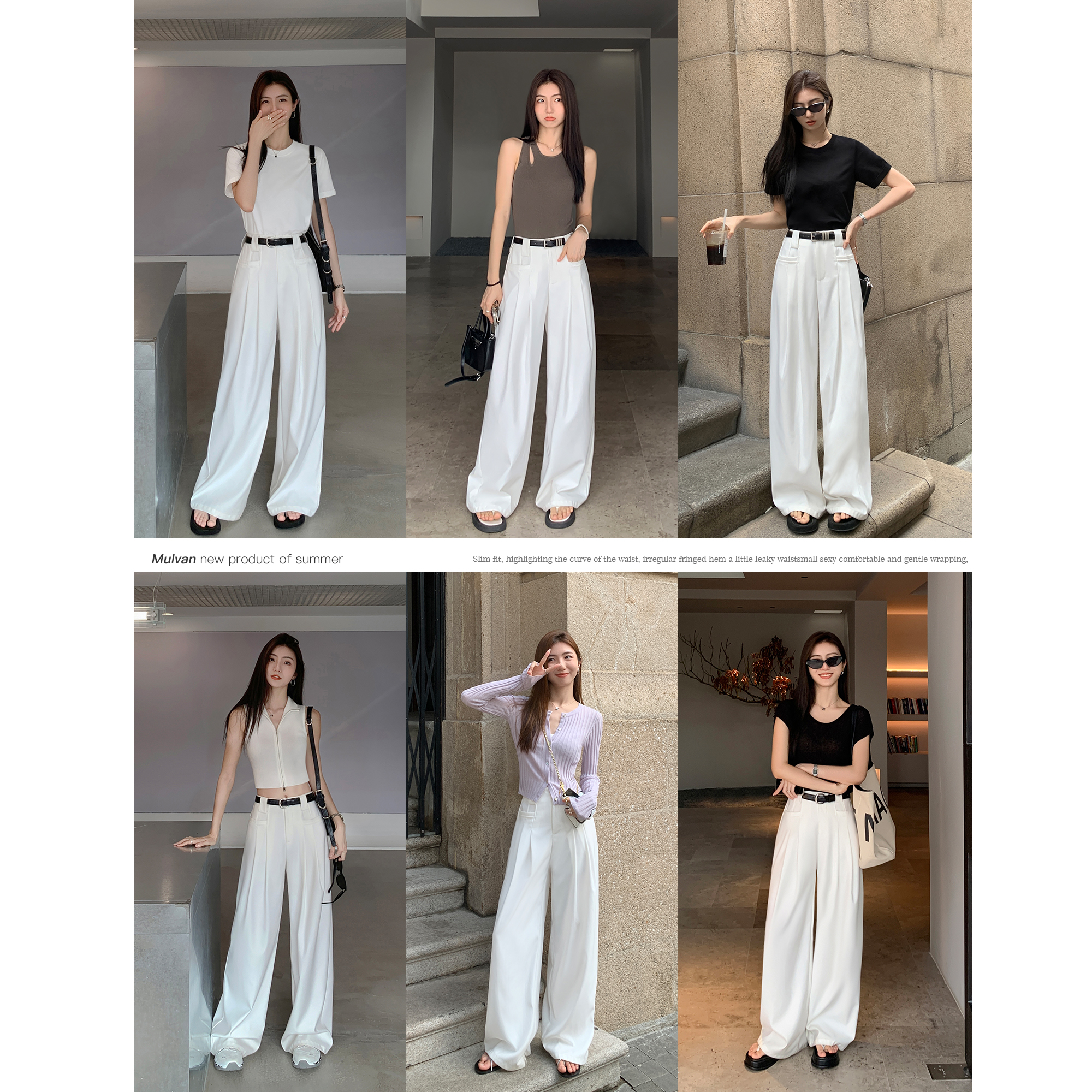 现货7.5折 宽松裤 白色直筒西装 女春秋高腰阔腿裤 子 裤 MULVAN