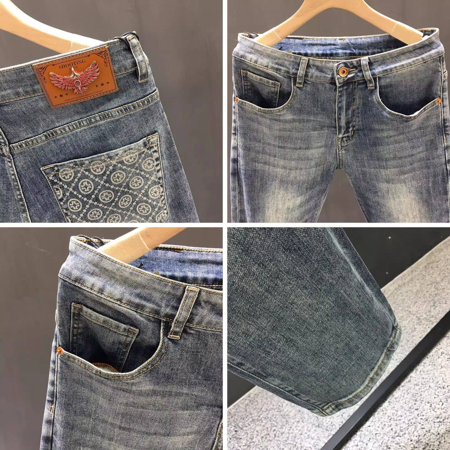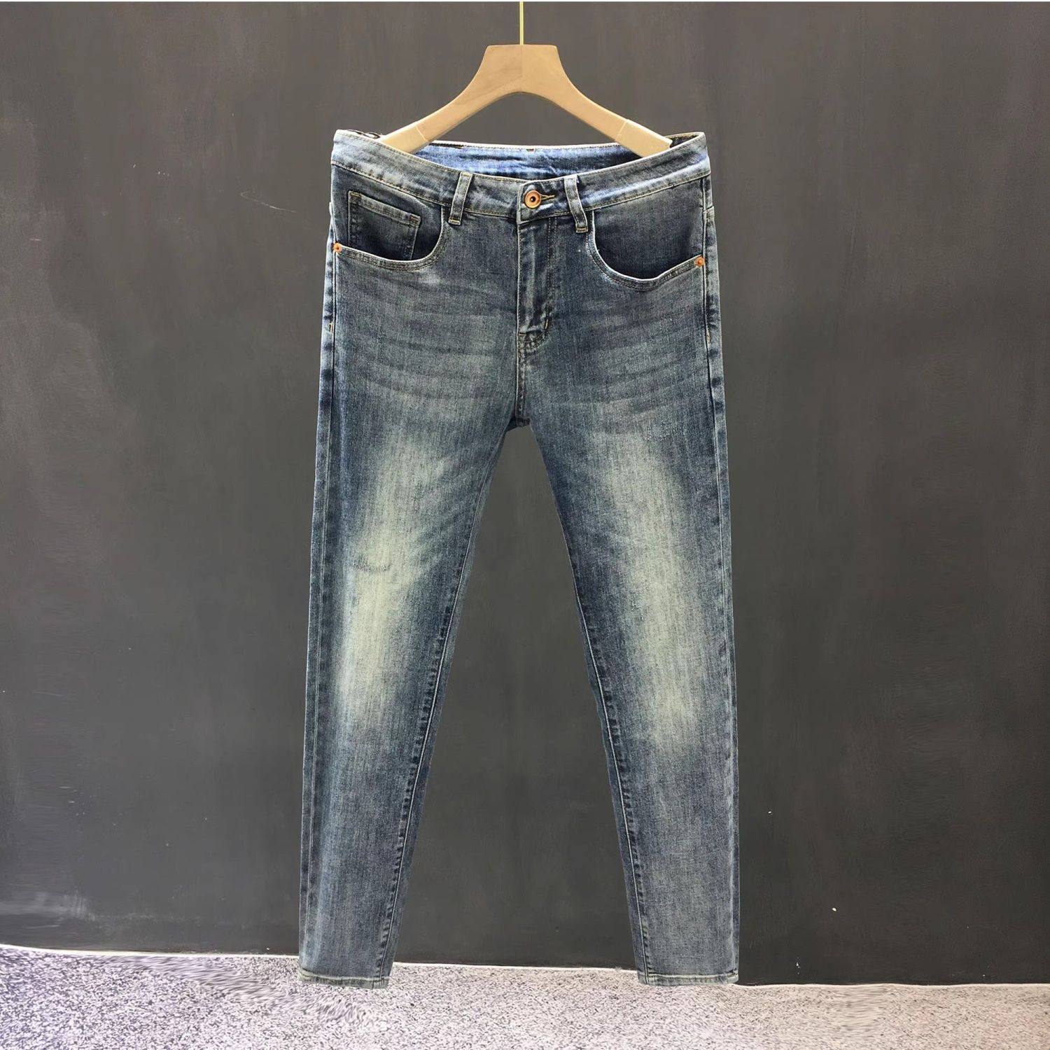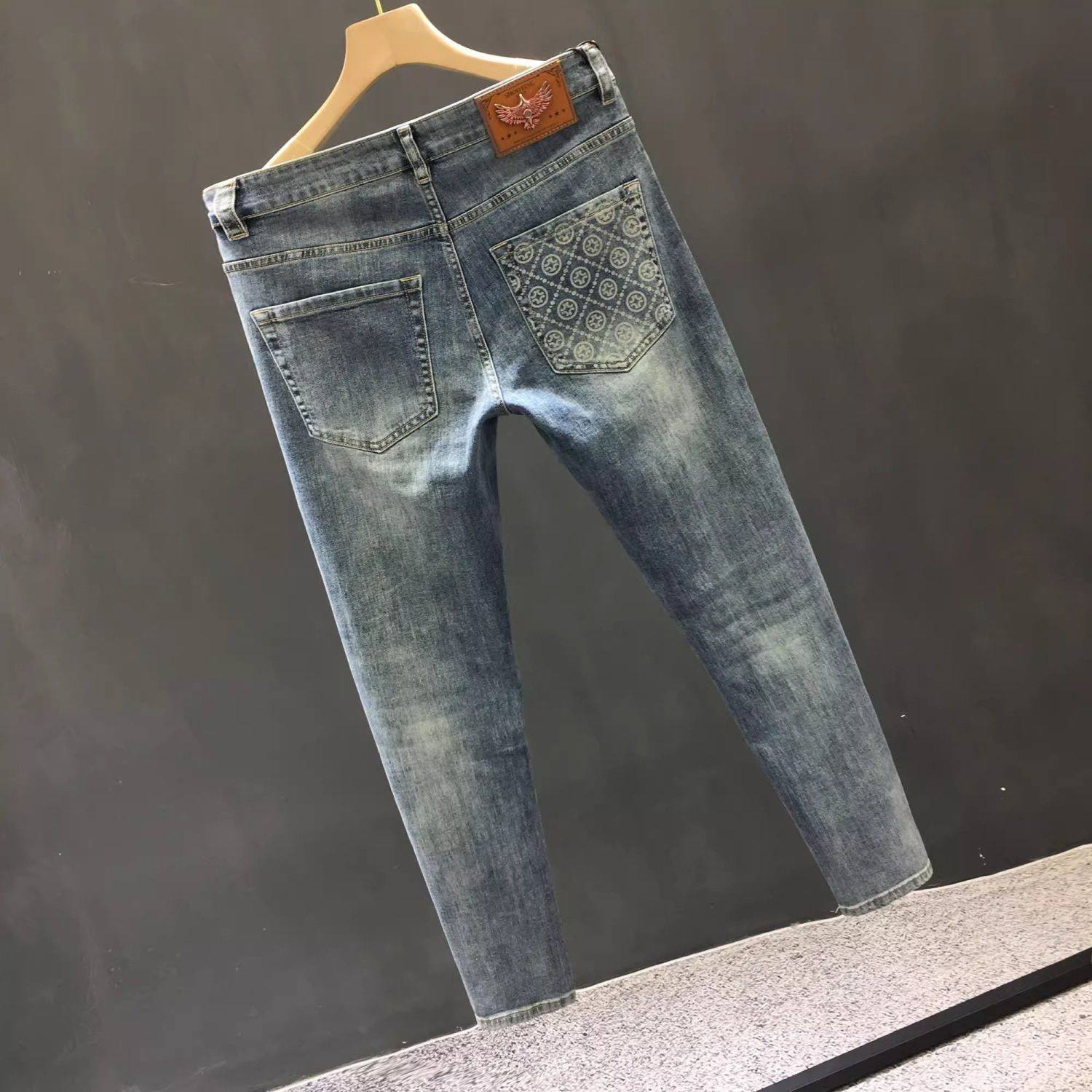 流行弹力印花小脚九分裤 秋季 子男春秋青年美式 牛仔裤 潮牌高端修身