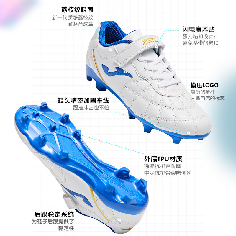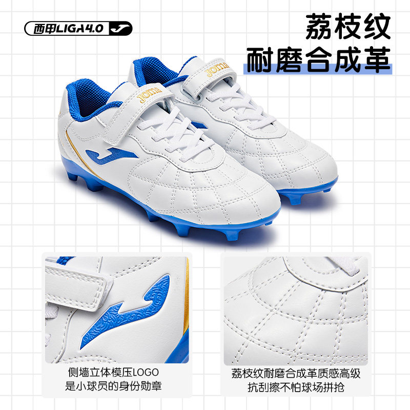 LIGA4 专业防滑天然草运动鞋 Joma25年新款 勇士AG魔术贴儿童足球鞋