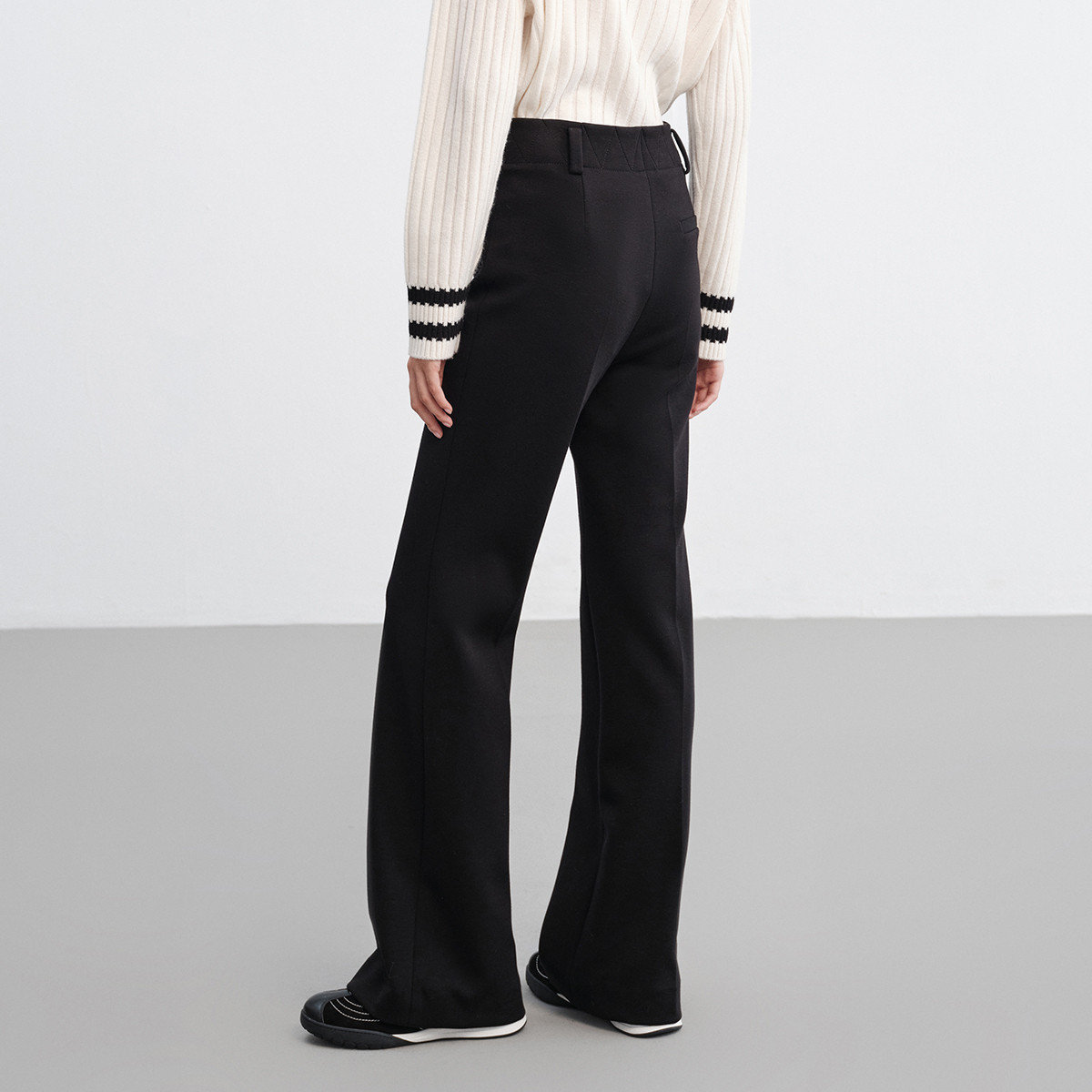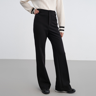 子潮 女秋冬加绒胖妹妹mm设计感高腰宽松显瘦休闲阔腿裤 黑色西装 裤