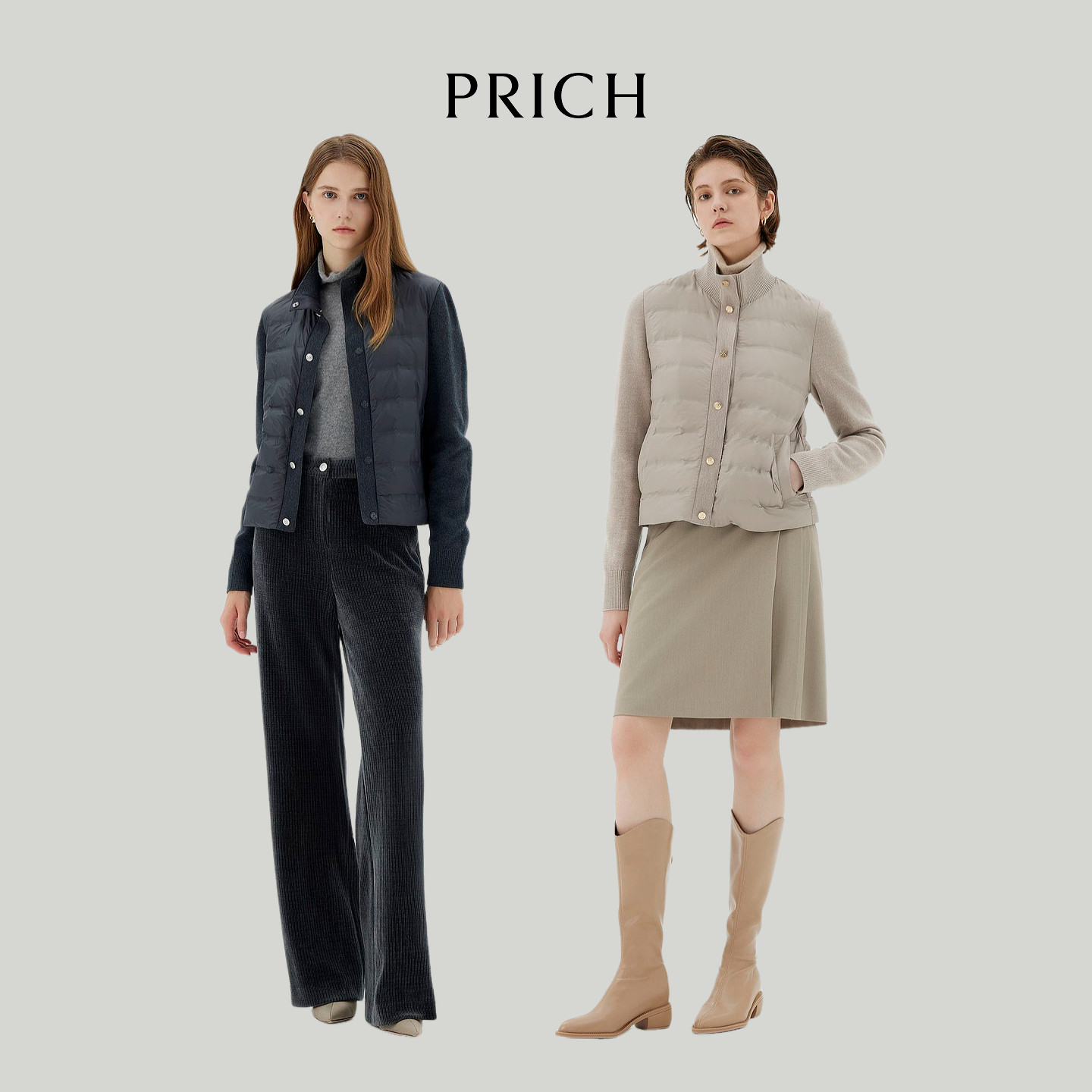 拼接羊毛袖 新品 PRICH轻薄排骨羽绒服2025年冬季 外套女 90%鹅绒