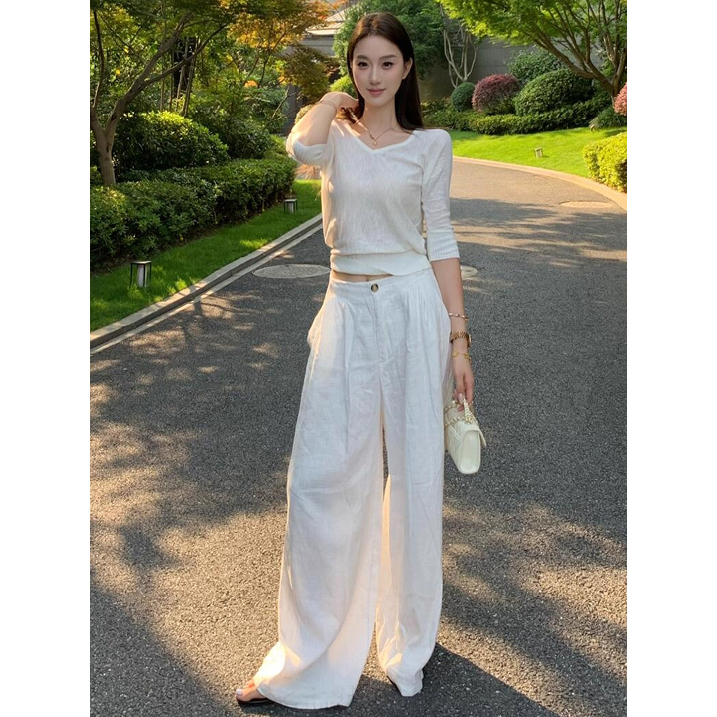 高个子加长垂感老钱风棉麻裤 白色亚麻阔腿裤 2026新款 薄款 子 女夏季