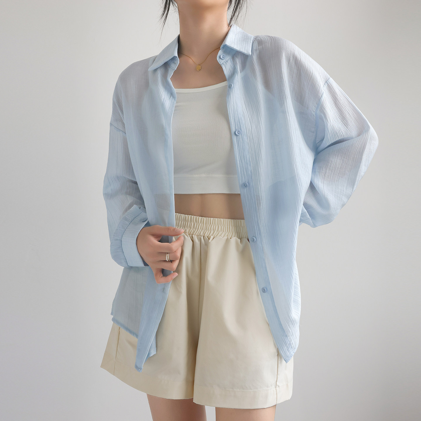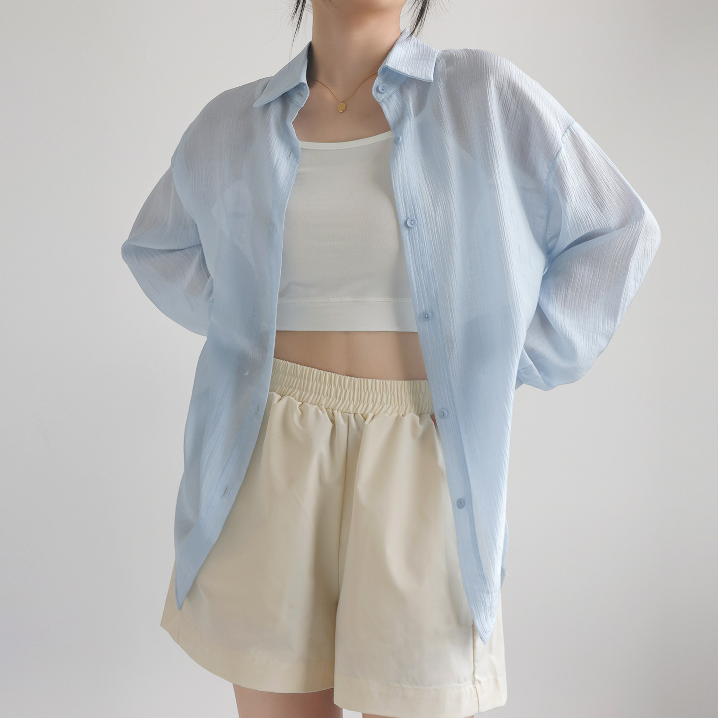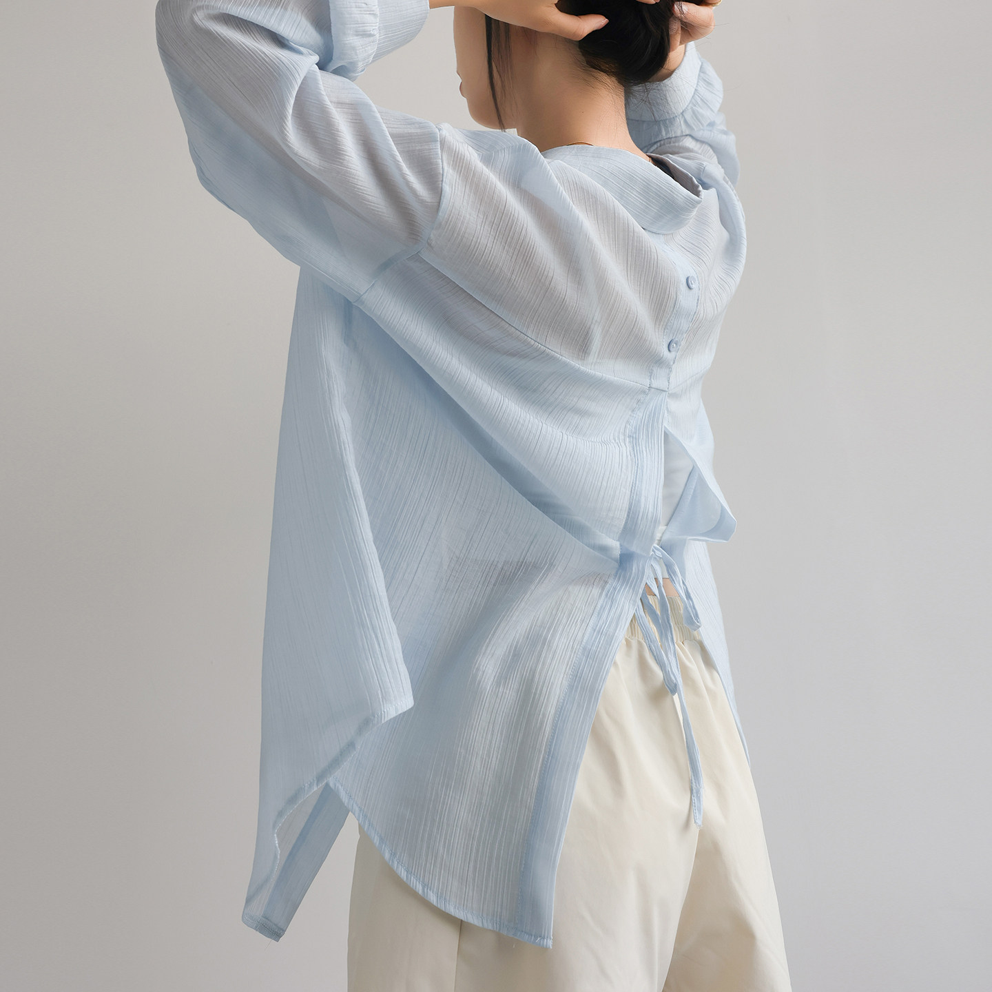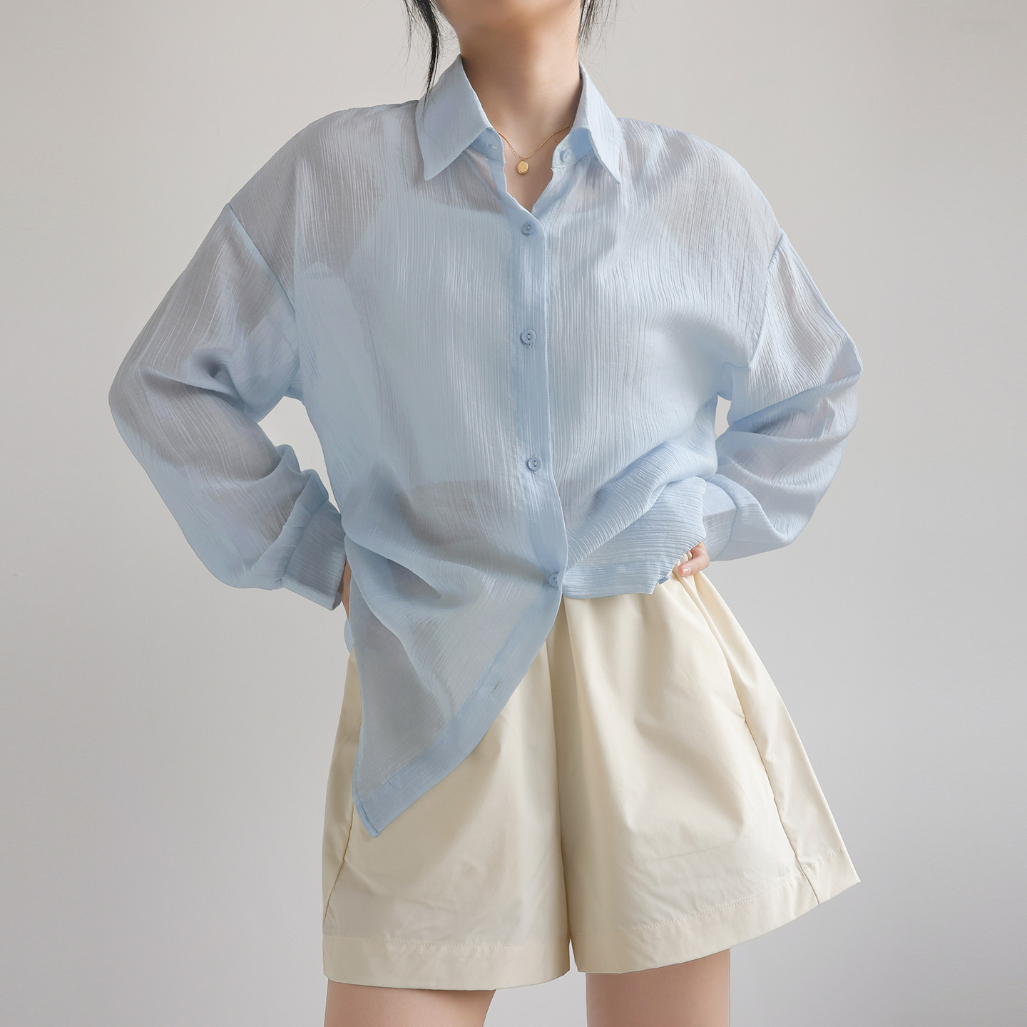 上衣 蓝色女外套设计感透气薄长袖 天丝雪纺防晒衬衣衬衫 2026夏新款