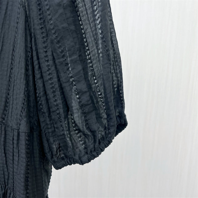 云分子原创春秋冬季 蕾丝显瘦超重工螺旋下摆气质连衣裙 V领长袖