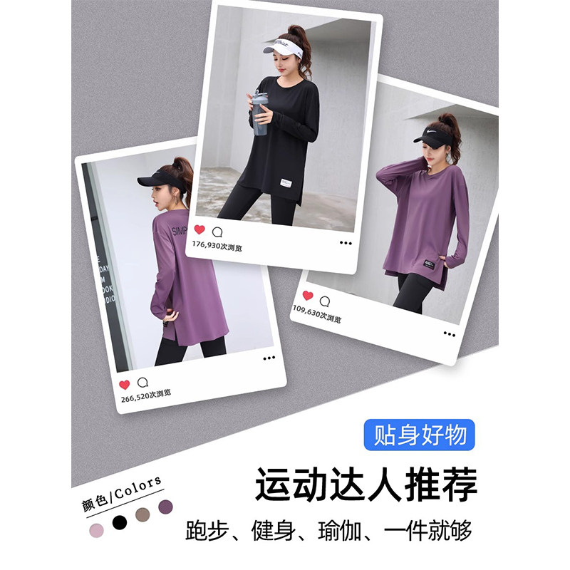 t恤跑步普拉提训练健身服套装 秋冬瑜伽服上衣女新款 速干运动长袖