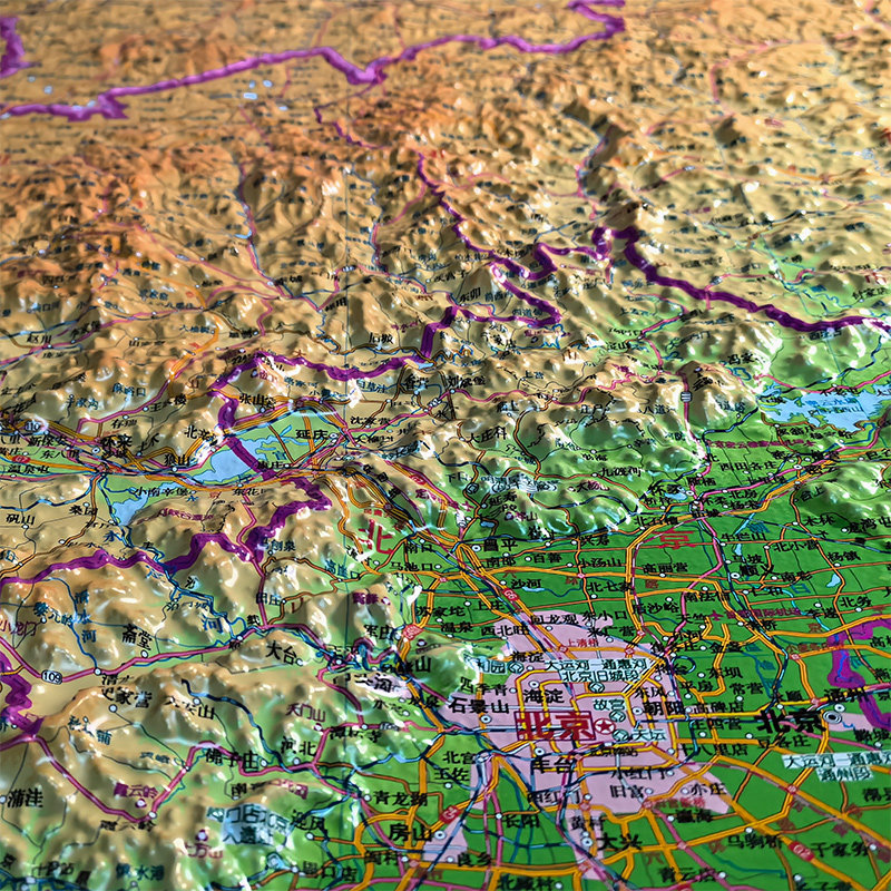 河北省地形图 饰挂画办公室书房凹凸背景墙地图装 1280mmx930mm大尺寸3D精雕凹凸立体地形图 装 饰 学生地理墙贴 2024版