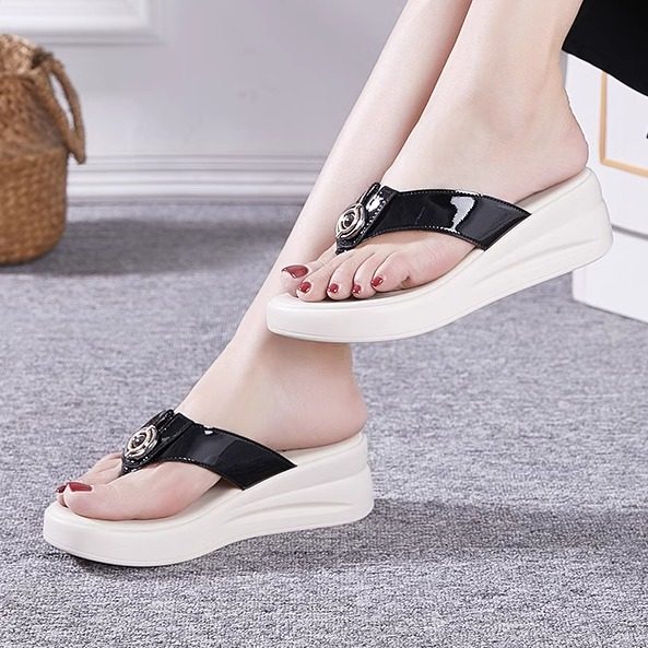 坡跟防滑女士夹脚凉鞋 外穿厚底平底中跟时尚 沙滩人字拖鞋 新款 夏季
