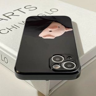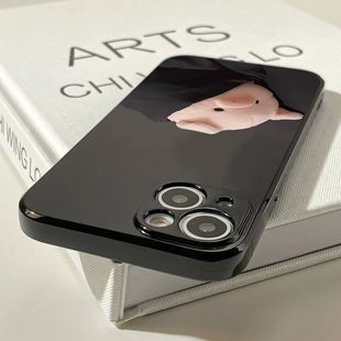 8plus直边xmax防摔保护xr个性 睡觉小猪适用苹果11手机壳iPhone4 15promax情侣款 15plus 5S亮面黑6