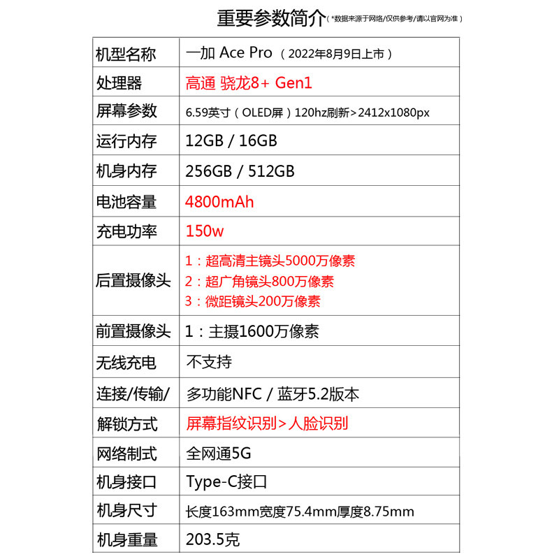 Pro Ace 骁龙8 Gen1 5G旗舰智能手机 OnePlus 超级闪充NFC 一加