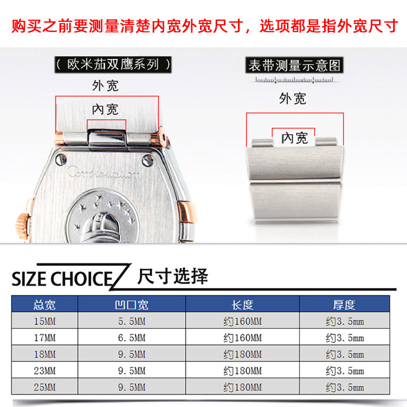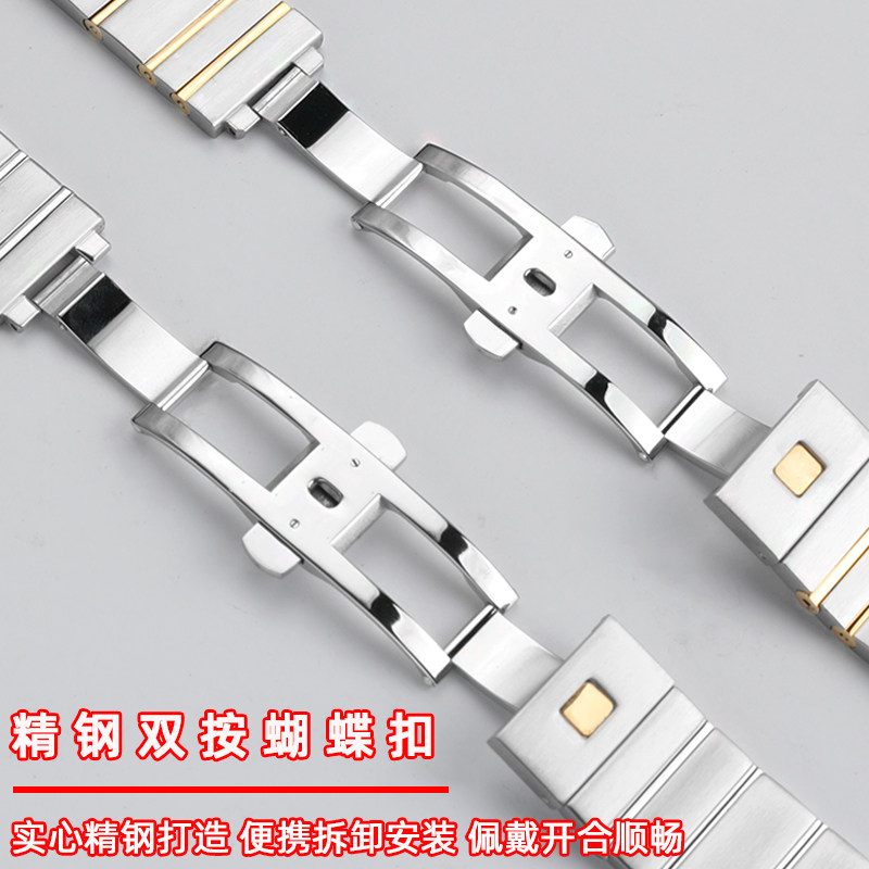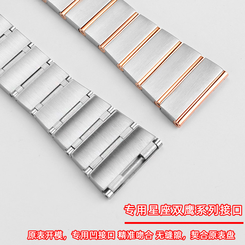 卓磊适用欧米茄双鹰星座钢带欧米伽凹口精钢手表带男女17 25mm