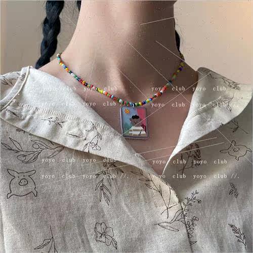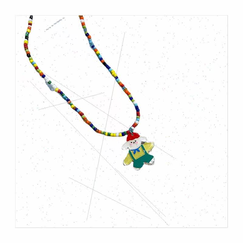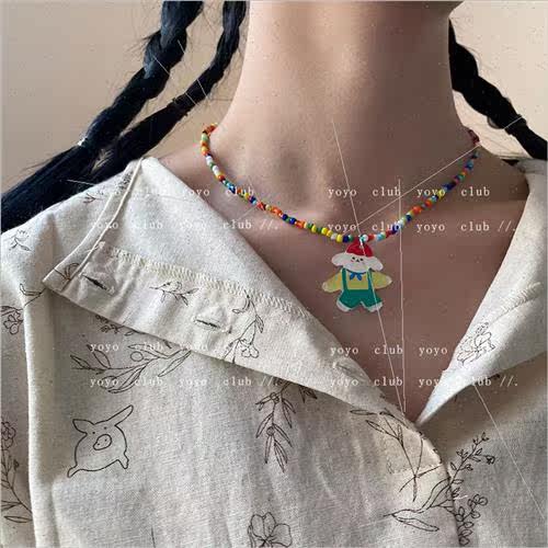 boy handmade puppy hat red bear cartoon necklace Korea ins