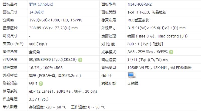 价格以咨询为准 群创液晶显示屏全新原厂原包现货 N140HCG GR2