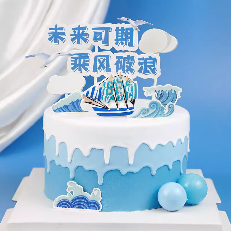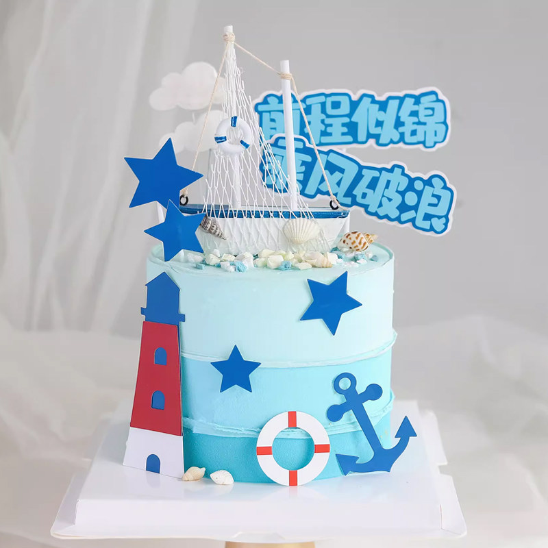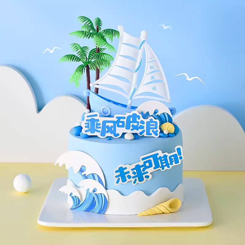 帆船蛋糕装 一帆风顺扬帆起航网红生日派对插件 饰品摆件学生毕业季