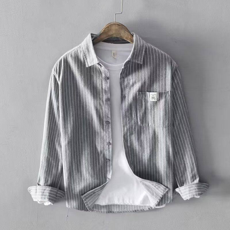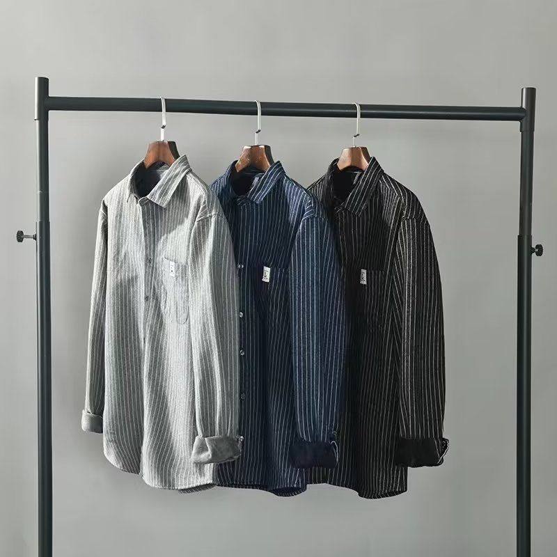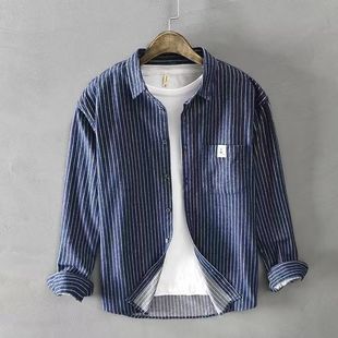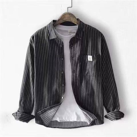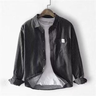 男士 打底衬衣男装 长袖 潮流宽松韩版 外穿夏 春季 条纹衬衫