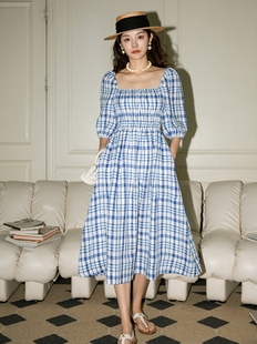 上衣 TOP家 复古减龄天丝棉泡泡袖 法式 连衣裙夏 中世纪方领系列