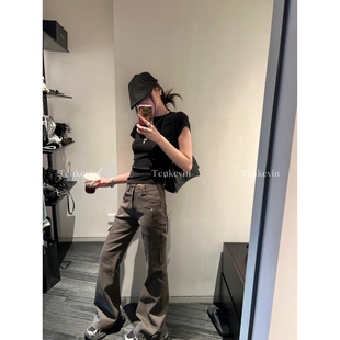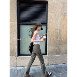 复古多口袋工装 美式 裤 女小个子修身 十一石 微喇休闲裤 长腿辣妹