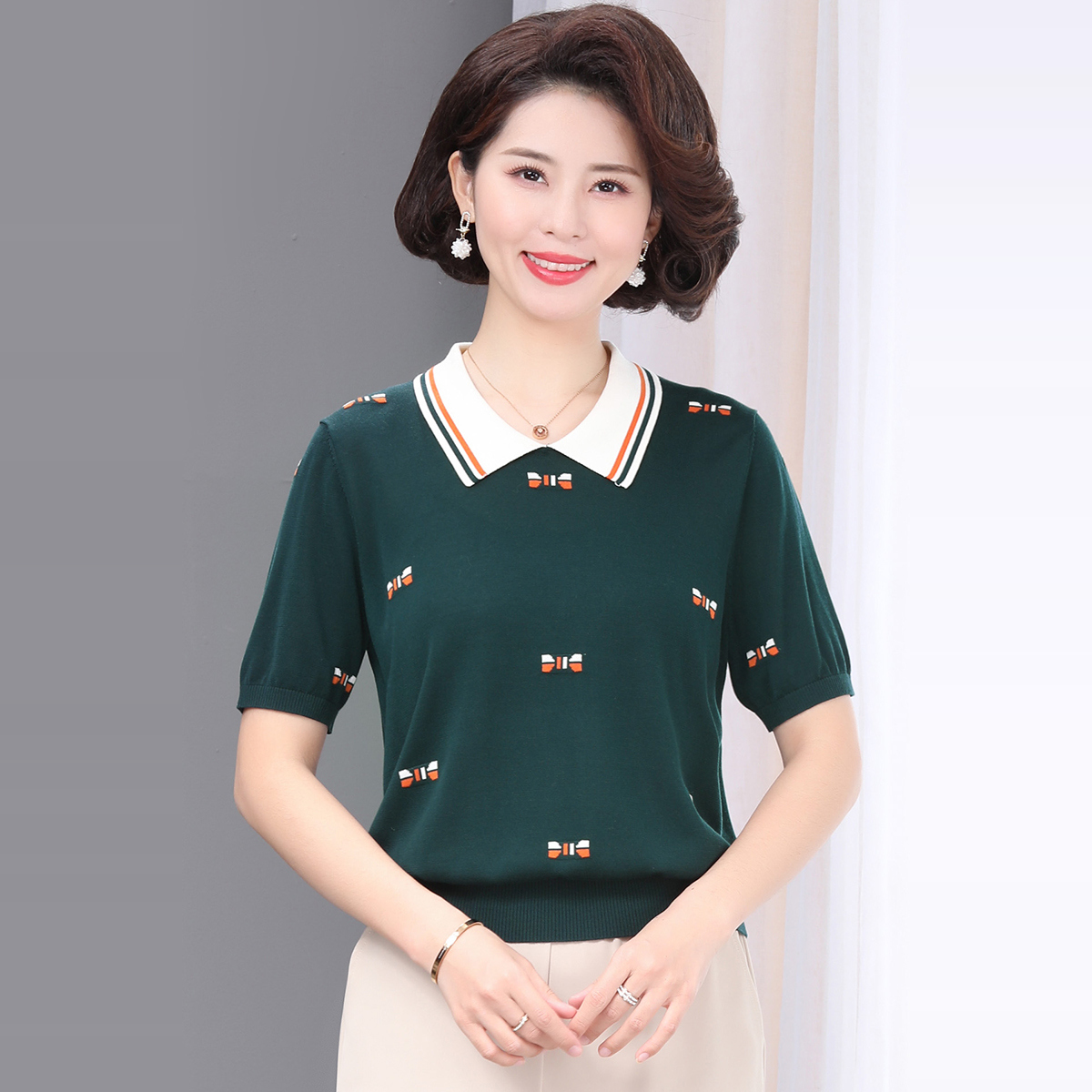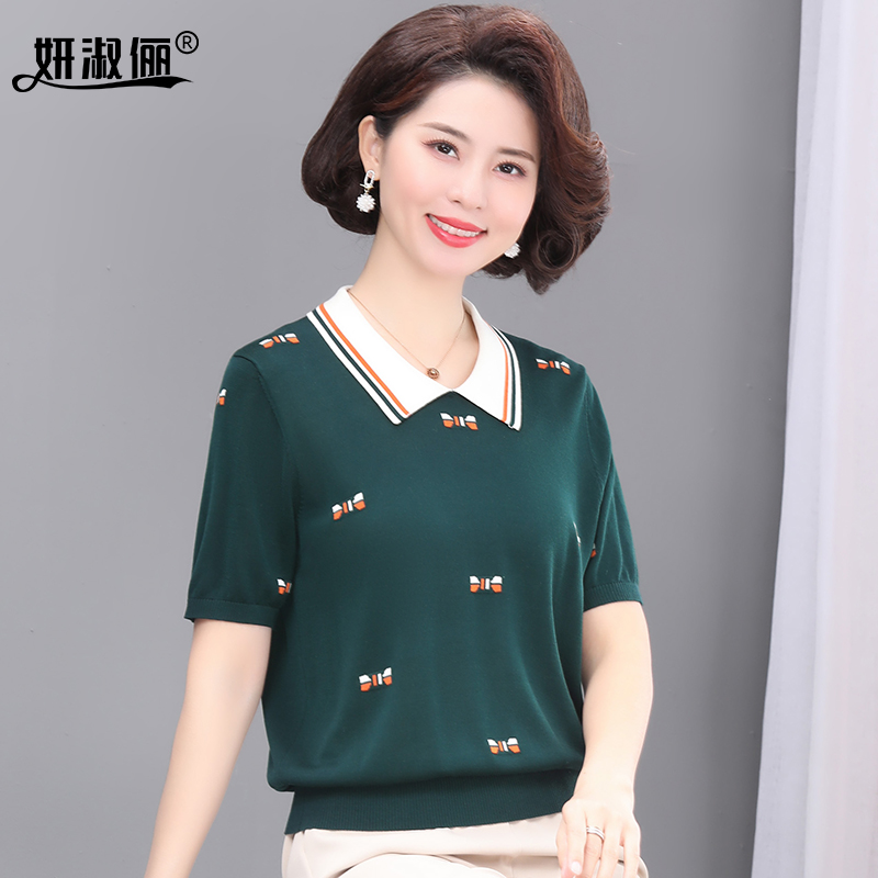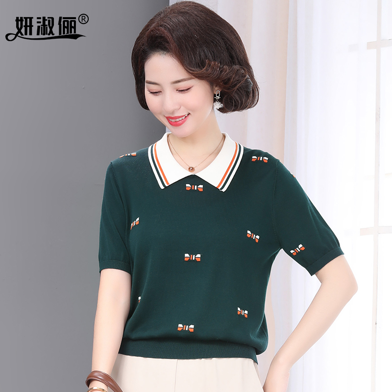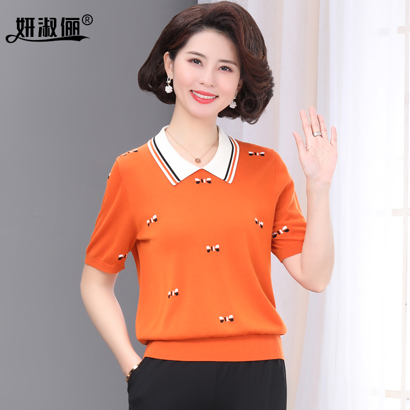 春秋老人衣服高档上衣女 长袖 中年妈妈夏装 t恤莱赛尔天丝针织小衫