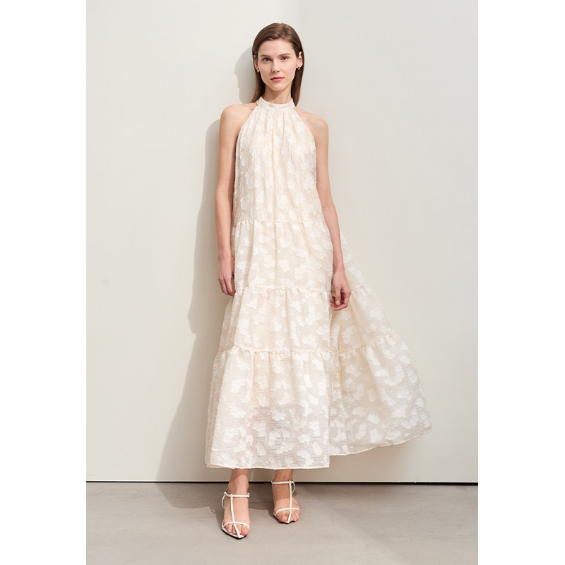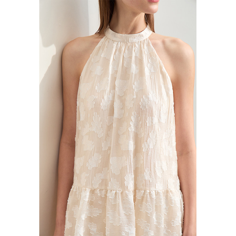 大A裙摆雪纺提花梭织连衣裙女款 削肩无袖 宽松长款 Amii2026夏新款