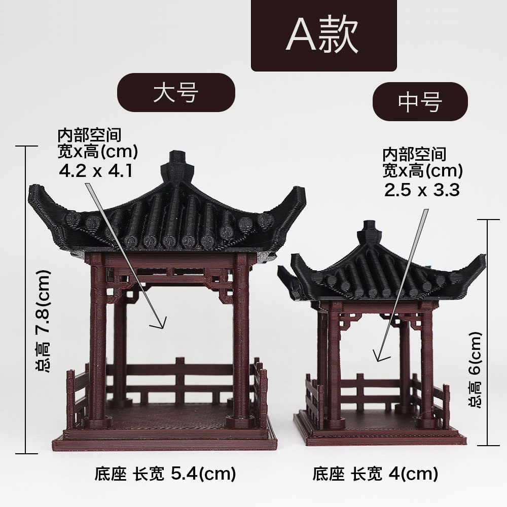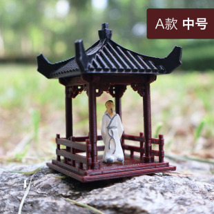 四角单层凉亭人物微景观造景中式 摆件盆景假山鱼缸模型古韵环保
