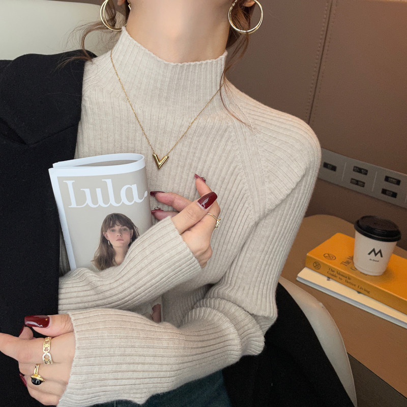 内搭高级感针织新年上衣 半高领打底衫 红色毛衣女秋冬修身 2025新款