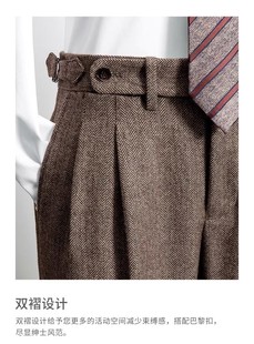 男 秋冬高腰直筒羊毛粗花呢廓尔格裤 英式 复古浴血黑帮那不勒斯西裤