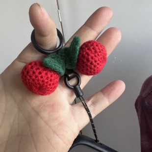 新款 红红火火大樱桃手机壳垫片挂饰指环扣挂件可挂钥匙包耳机u盘