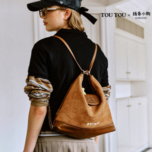 生日礼物TOUTOU新款 线条小狗托特包大容量银色腋下包通勤双肩包女