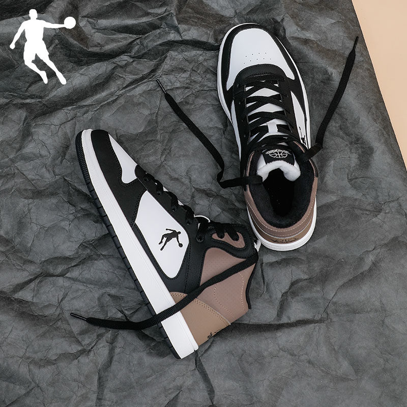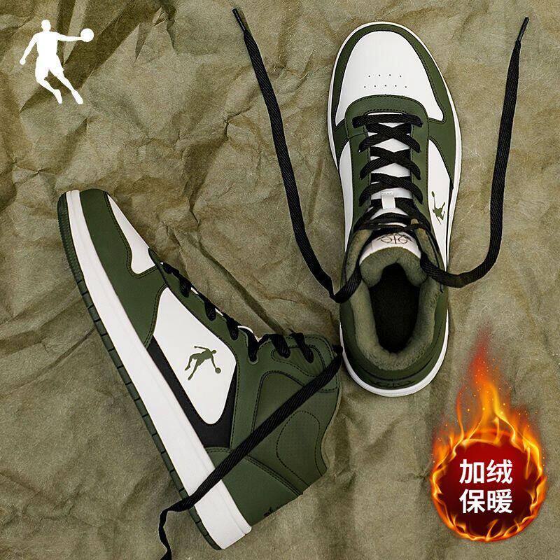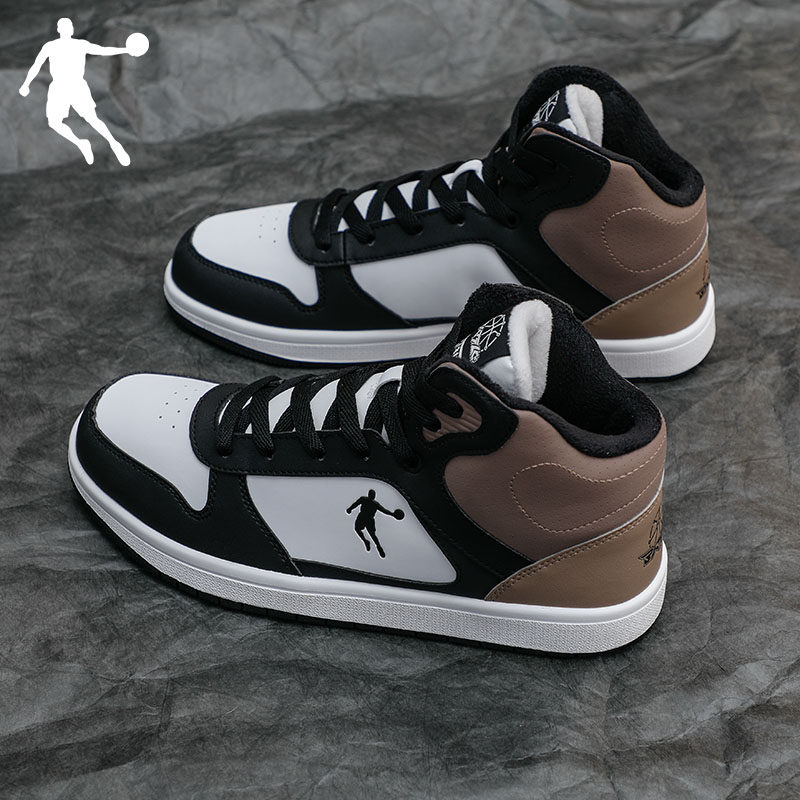 秋冬季 皮面运动鞋 韩版 子棉鞋 潮加绒保暖休闲鞋 中国乔丹男高帮板鞋
