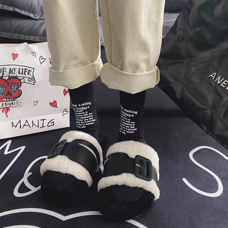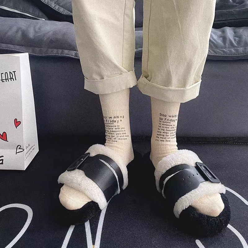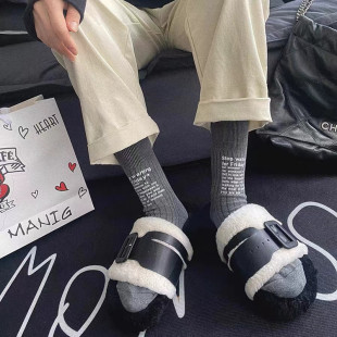 潮牌22FW欧货小众英文字母双针袜子男女中筒袜纯棉堆堆袜ins同款